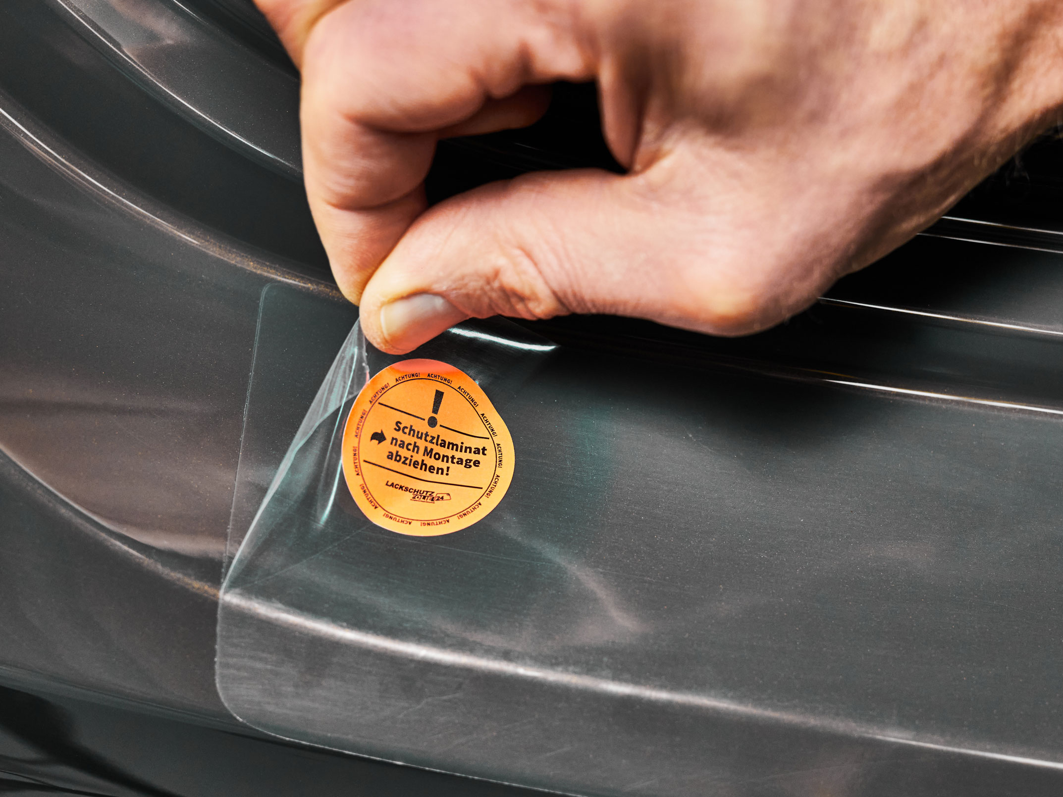 - gewünschte Lackschutzfolie vom Trägerpapier abziehen
